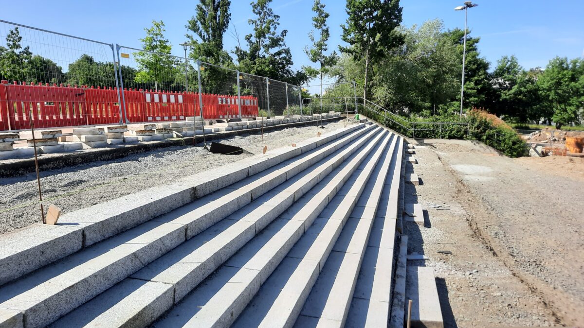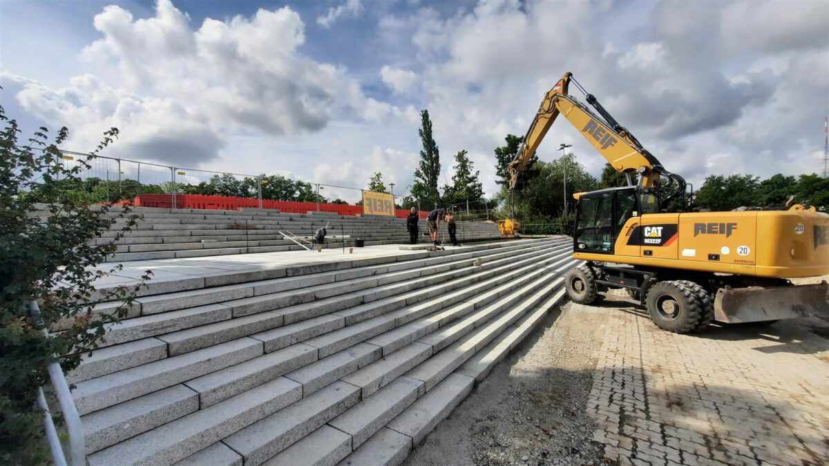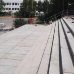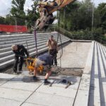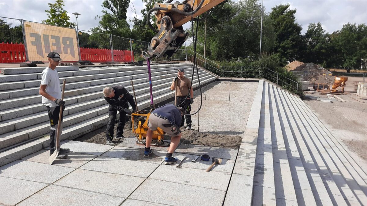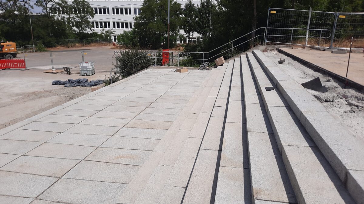Im Auftrag der Leipziger Entwicklungs- und vermarktungsgesellschaft sind wir hier abermals auf dem Gelände der Alten Messe Leipzig aktiv. Diesmal gilt im Zuge eines größer angelegten Platzumbaus, eine großflächige Treppenanlage zu erneuern. Dafür wird die gesamte Treppenanlage abgerissen und durch neue Treppenstufen ersetzt.